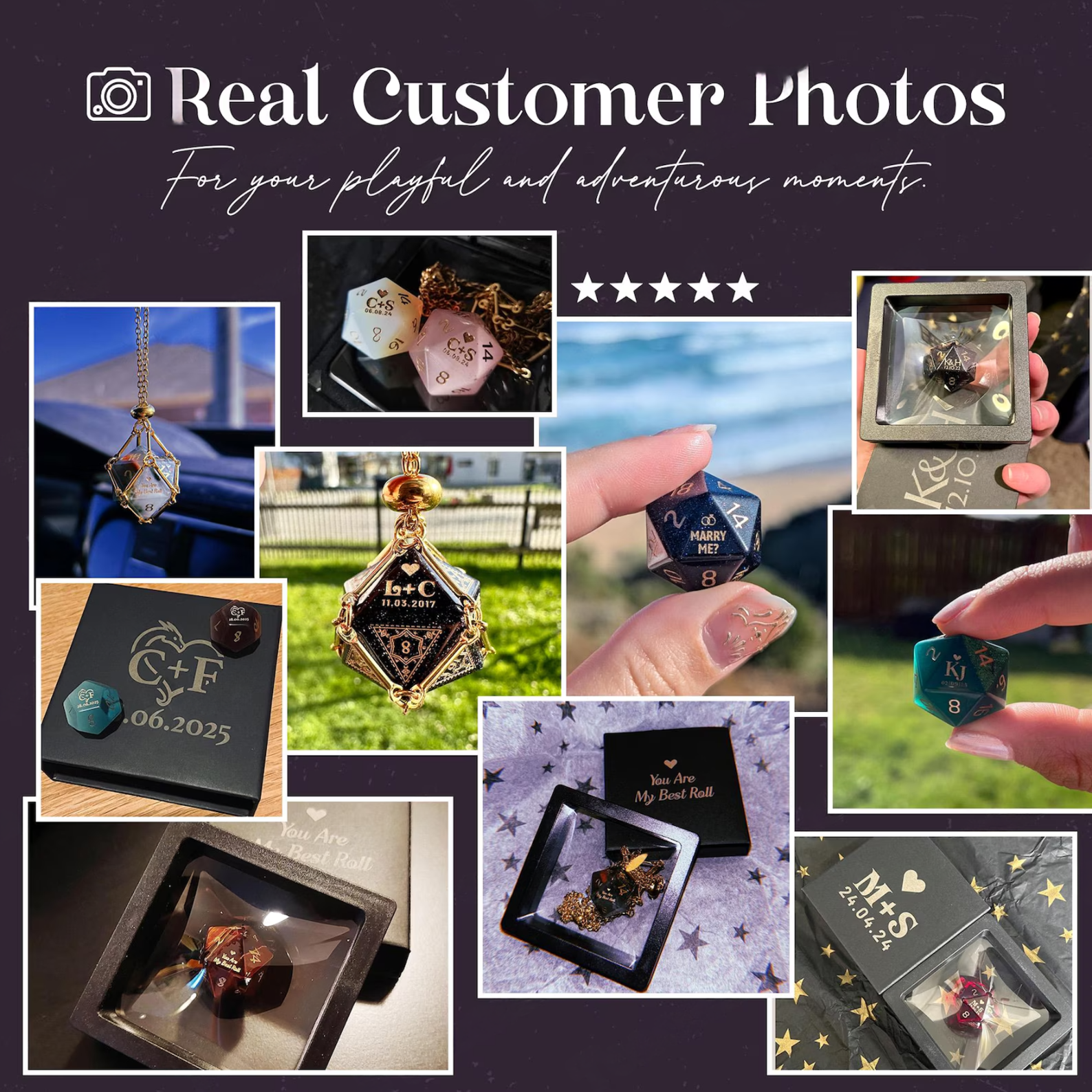 Celebrate your shared adventures with a keepsake that’s as rare as a critical hit — your personalized D20 of love and luck.